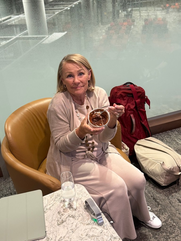 We landed in Singapore for a four hour layover. Their lounge was fantastic. I had a more traditional breakfast of home fries and dumplings.