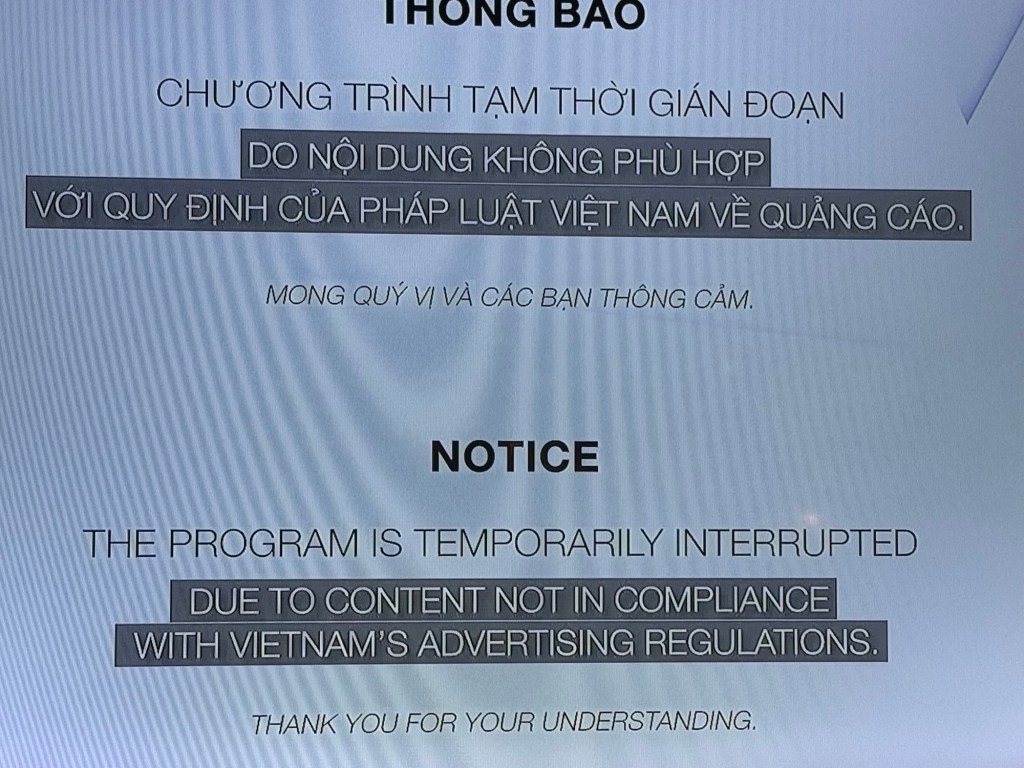 Now in our hotel. Watching BBC news. Check out how Vietnam controls commercials they do not approve of. Take a lesson America.