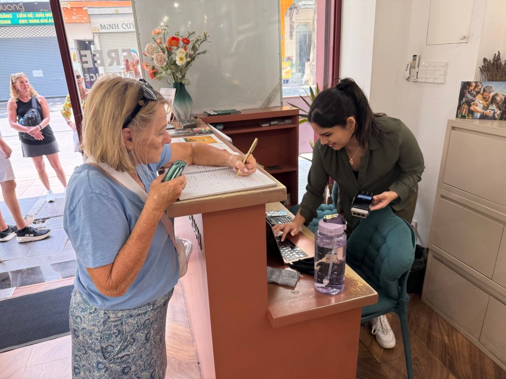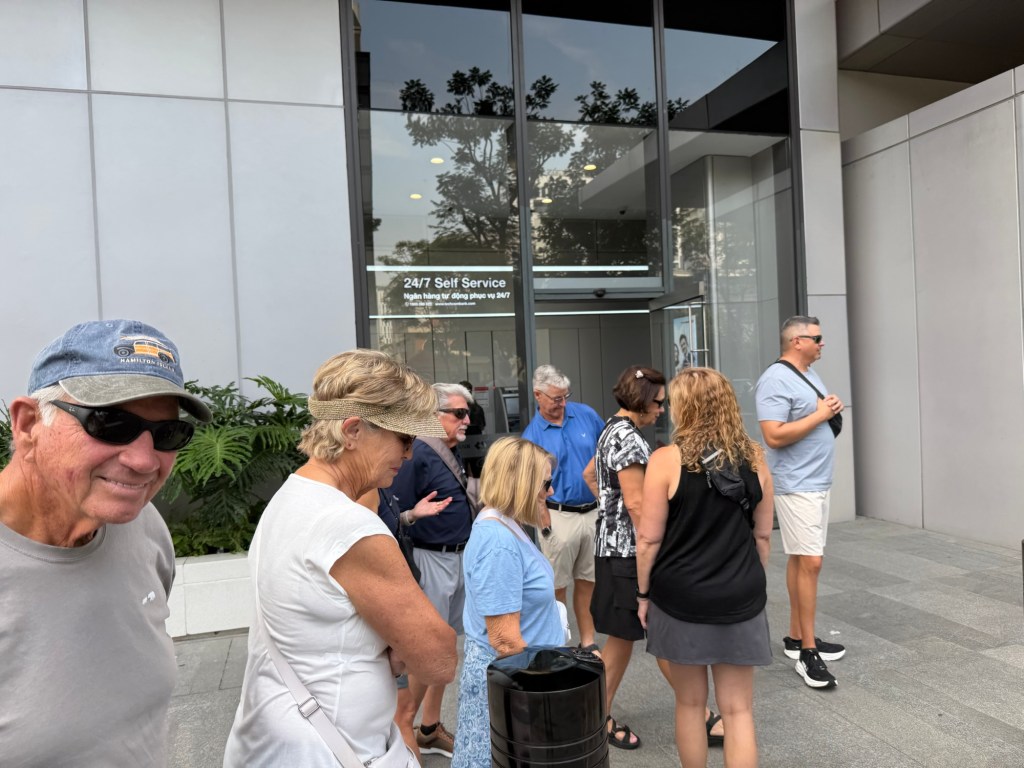 First stop was a bank. We needed dong. That is Vietnamese currency.