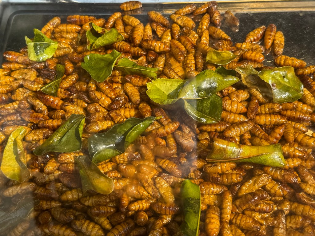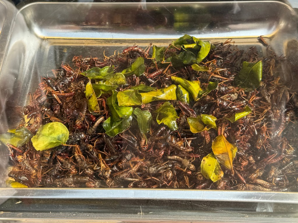 During our bus ride we stopped at a Happy Room for those that needed to use it before reaching the monastery. At the stop they were selling some silk worms and crickets done in the Kentucky fried chicken style.
