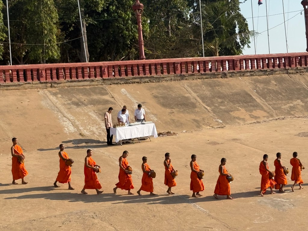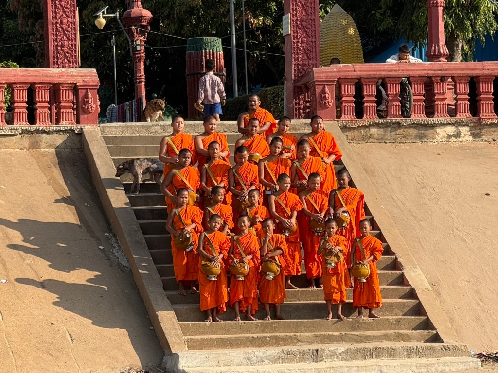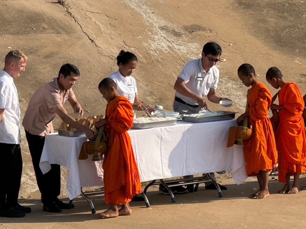 Another morning in Cambodia. We were able to observe some monks coming down to our vessel and pick up breakfast.