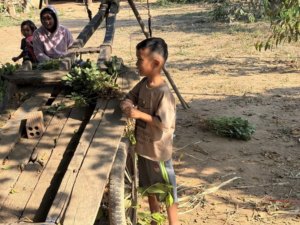 From there we saw young children shelling peanuts.