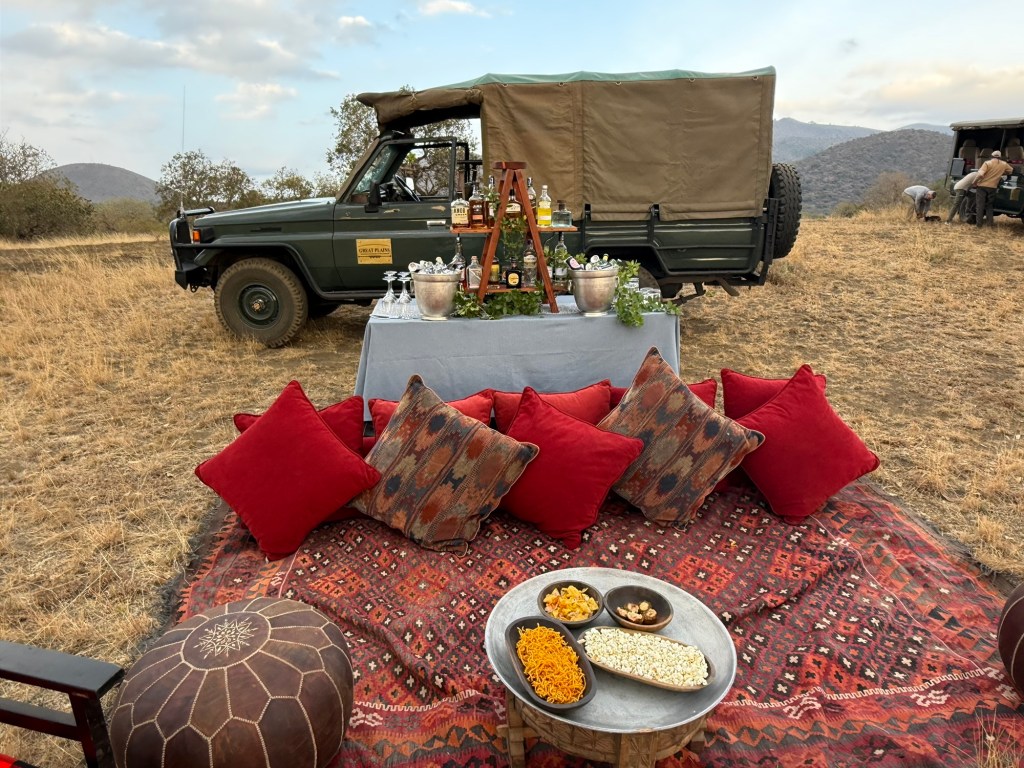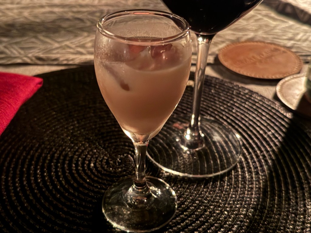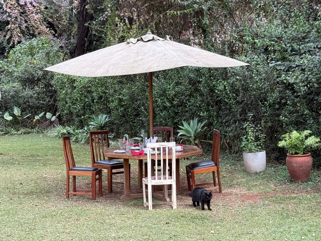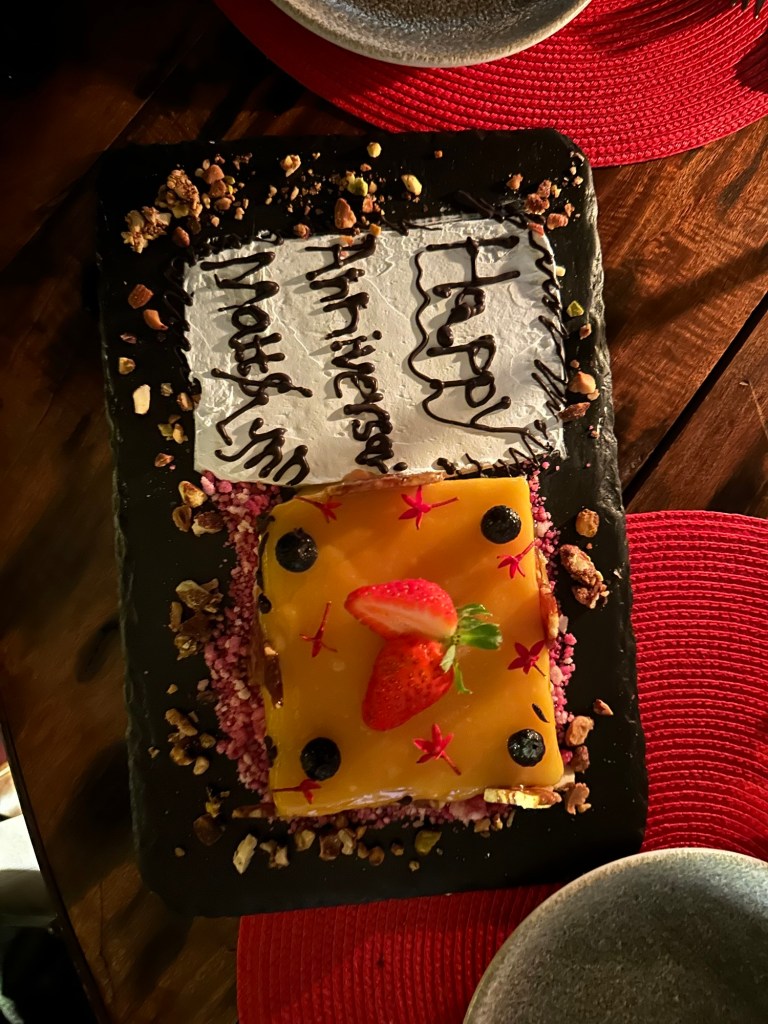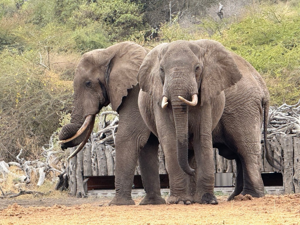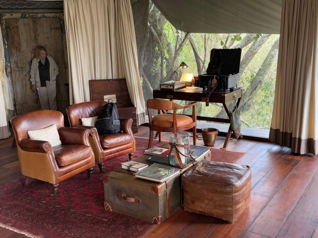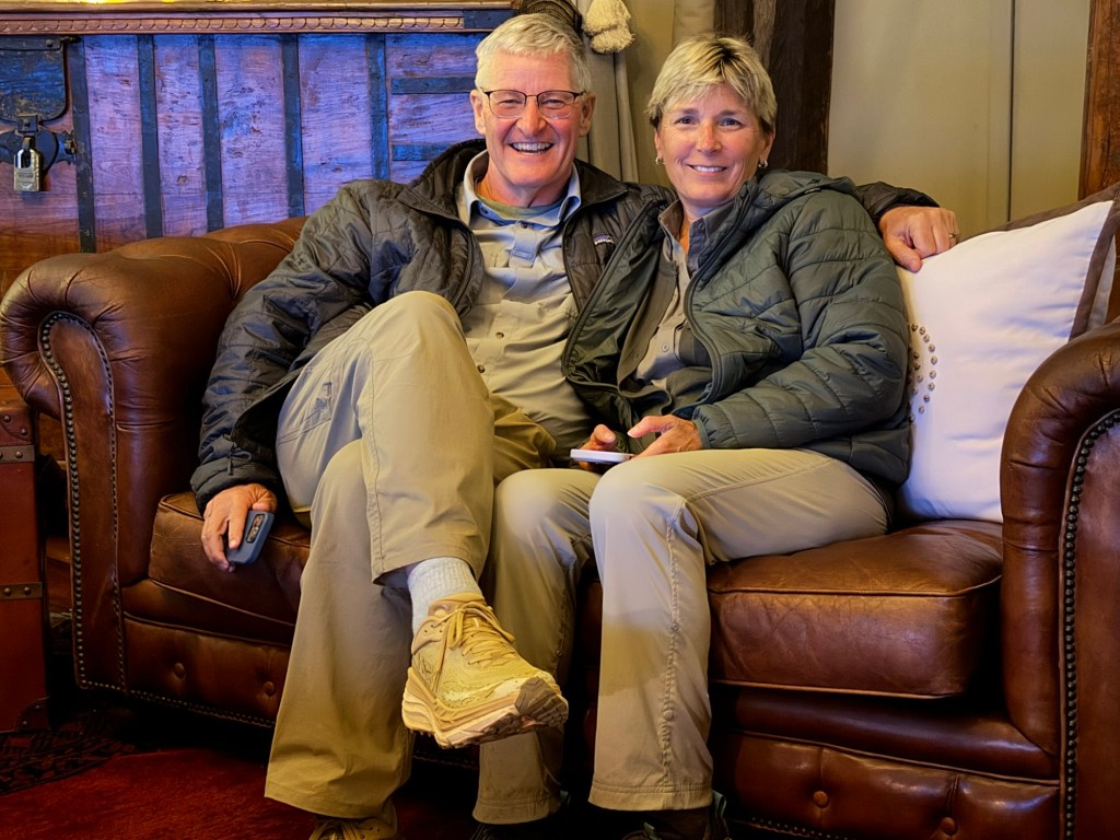 Well we came back to a pouring rain. I had planned a dinner in the bush because it was the Princess and my 52 wedding anniversary. The rain put a damper on that. So instead Rolex our server put is in the wine room. A few pics from that special occasion with special friends.