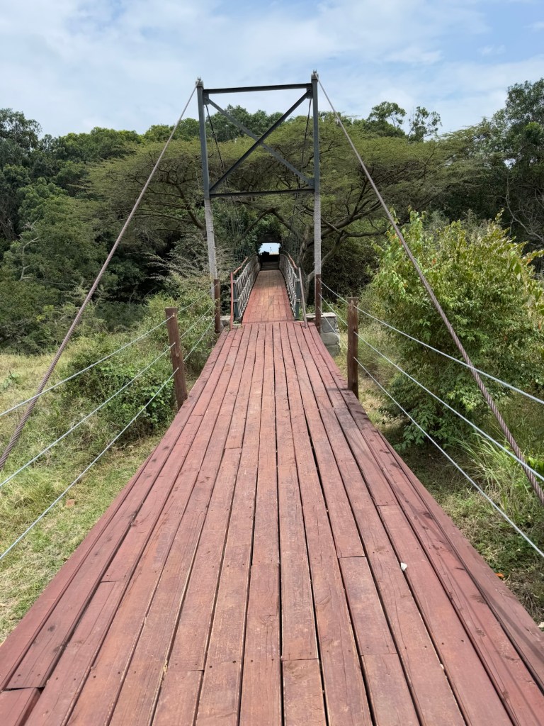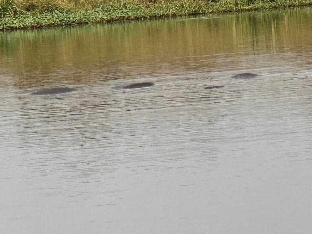 A long walk over a bridge that beneath was a herd of hippos.