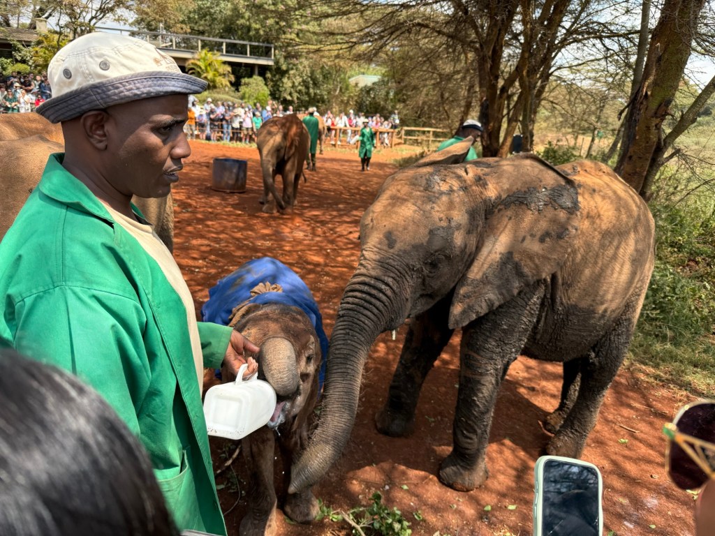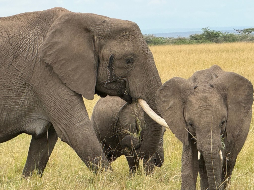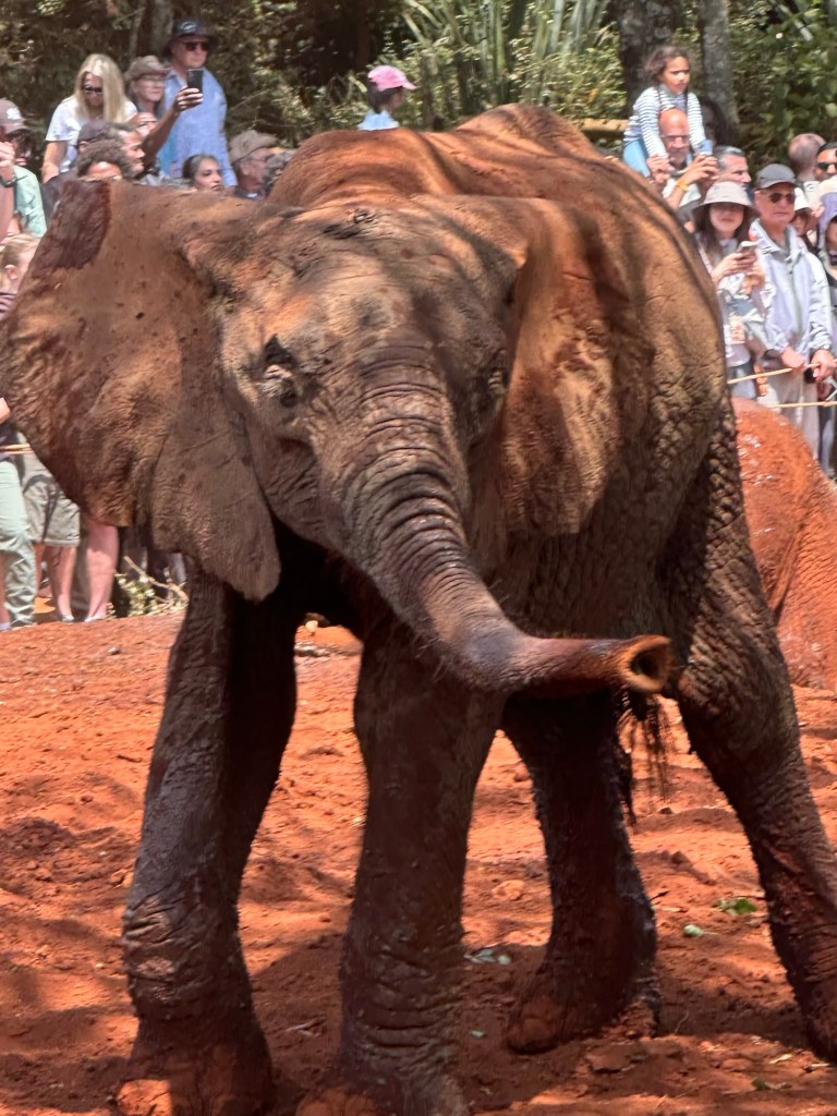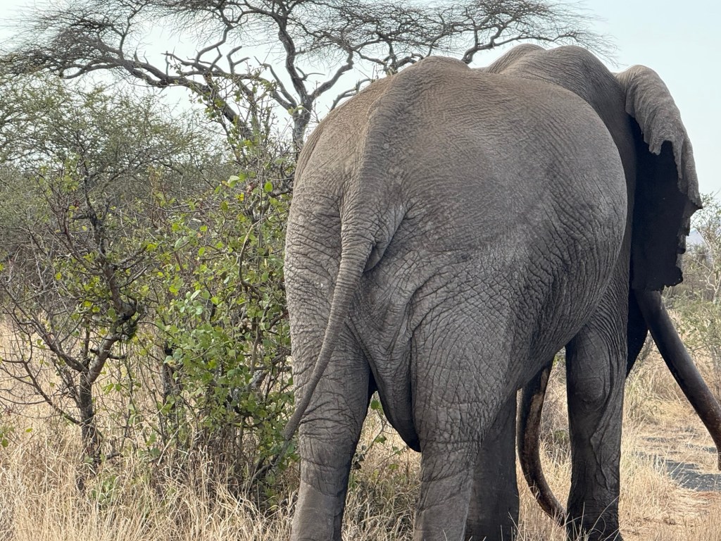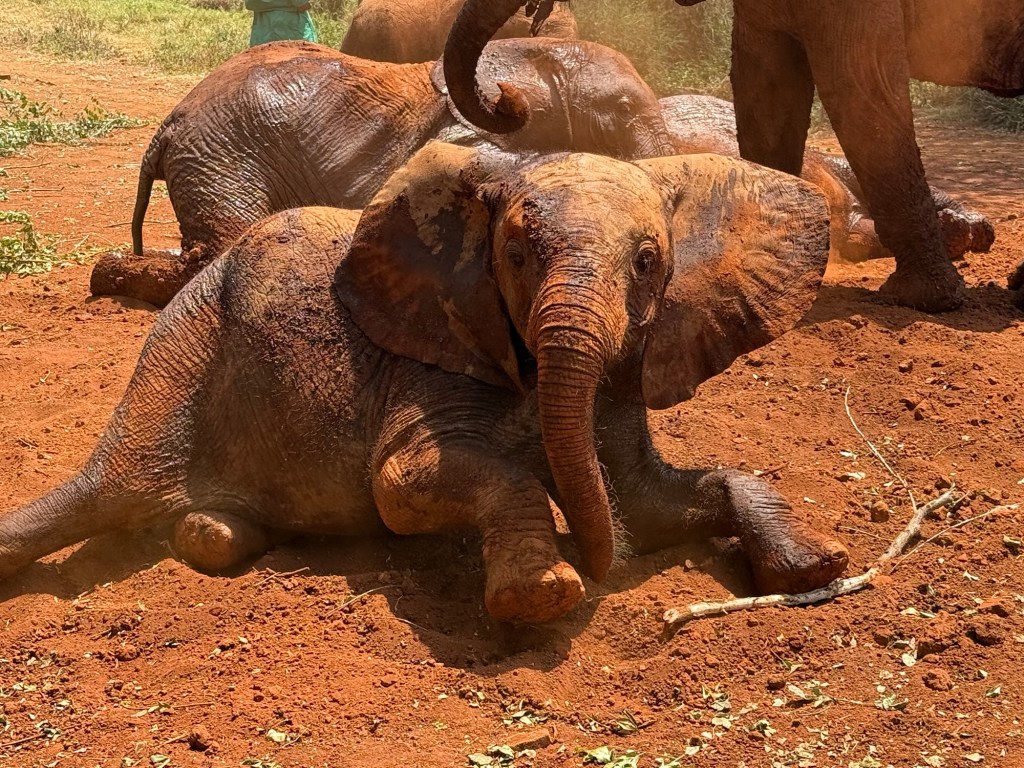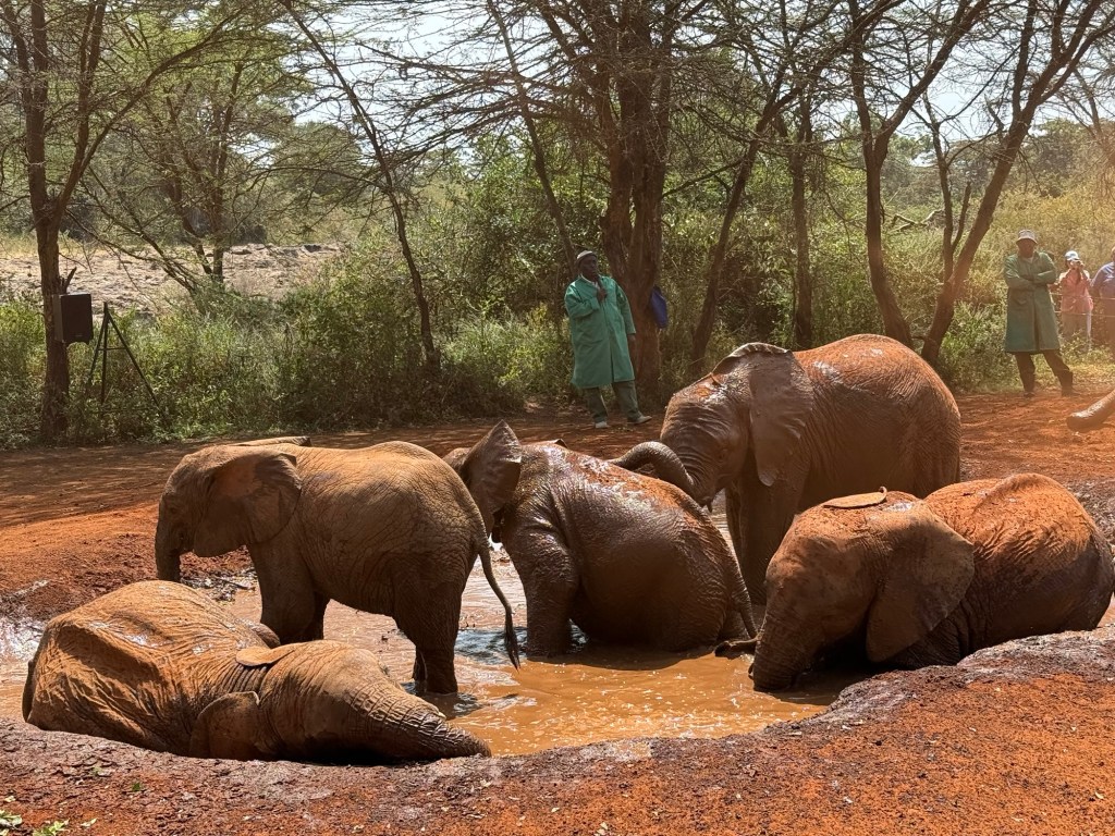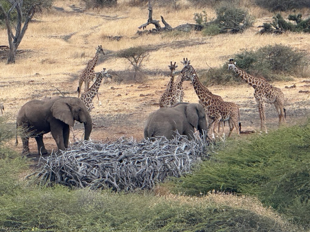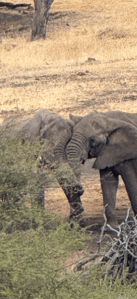 Then a herd of elephants. We saw individual elephants before but never a herd with babies like this one.