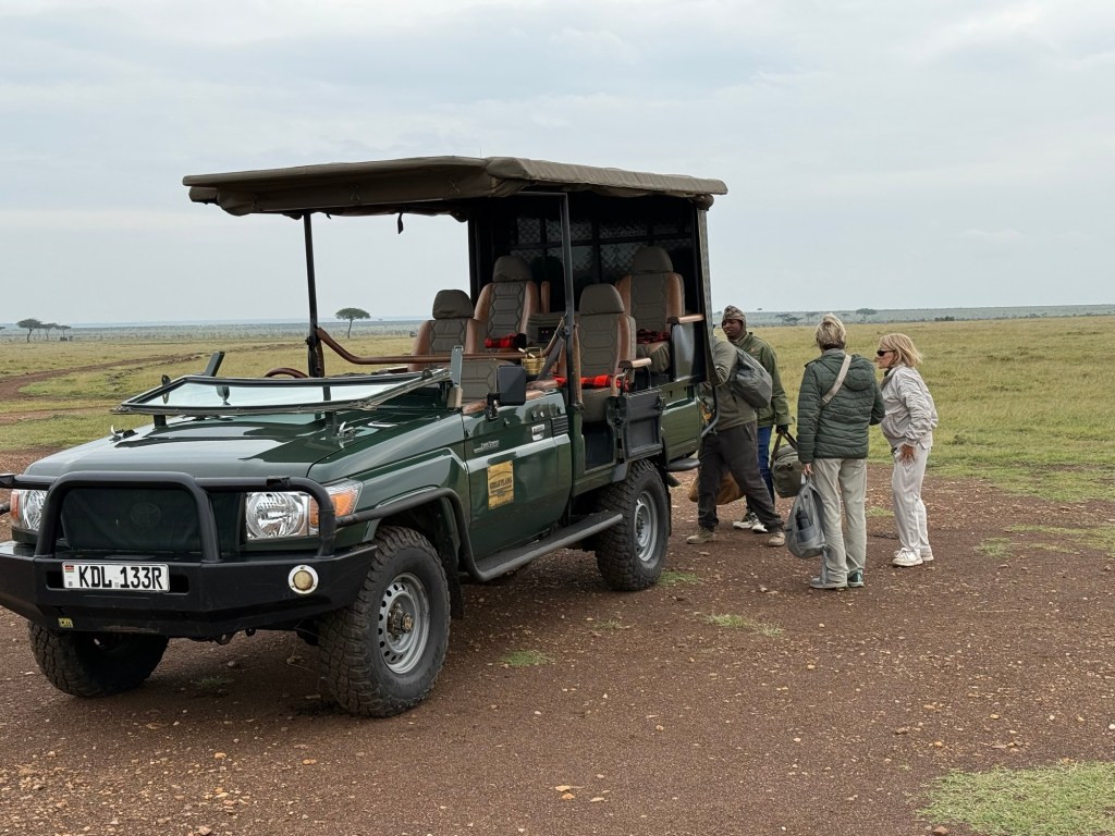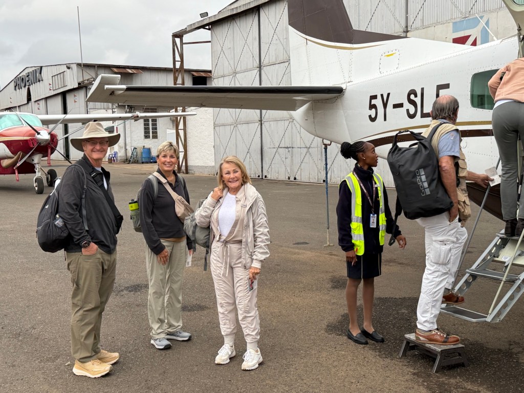 After a great breakfast we jumped in our jeep to the local airport. Along the way we reached a fork in the road. Go left to the airport or right back to our African house. Since the gorillas were still waiting we went left.